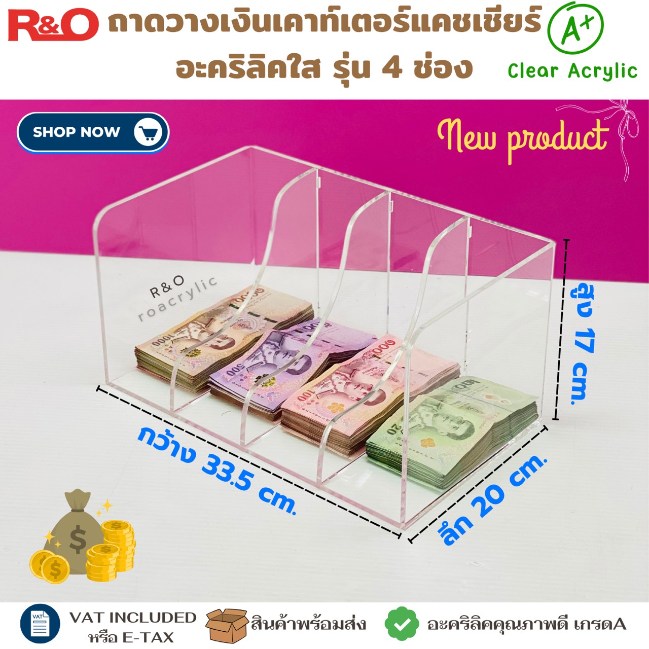 ถาดอะคริลิคใสหนา5มิล ขนาดกว้าง30x30x6 cm.