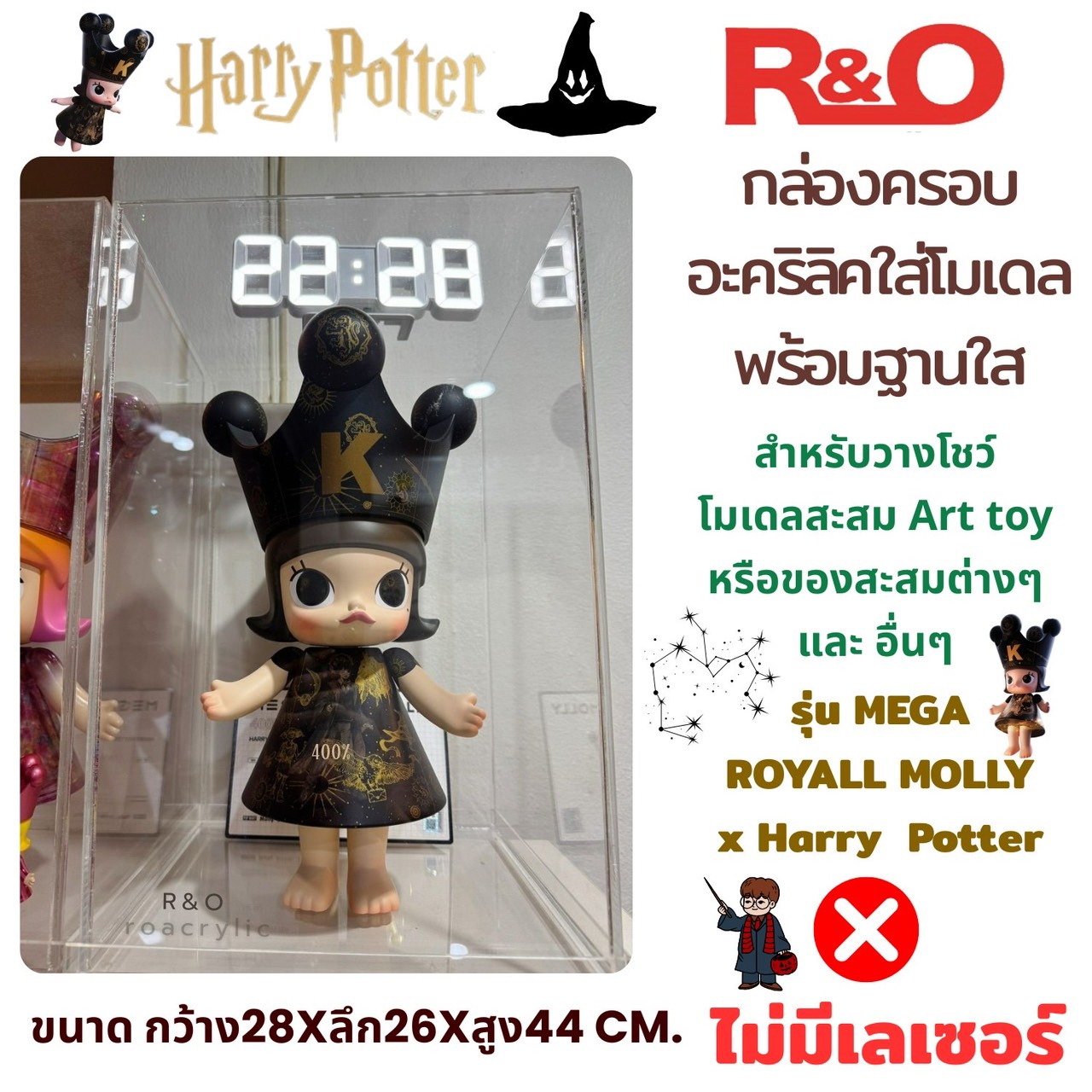 กล่องครอบกันฝุ่น อะคริลิคใสพร้อมฐานไม้ ขนาด 22x15x15 cm.
