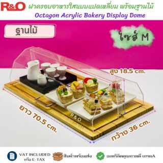 ฝาครอบอาหารอะคริลิคใสทรงแปดเหลี่ยม พร้อมฐานไม้ ไซส์ M ขนาด 70.5x36x18.5 cm.