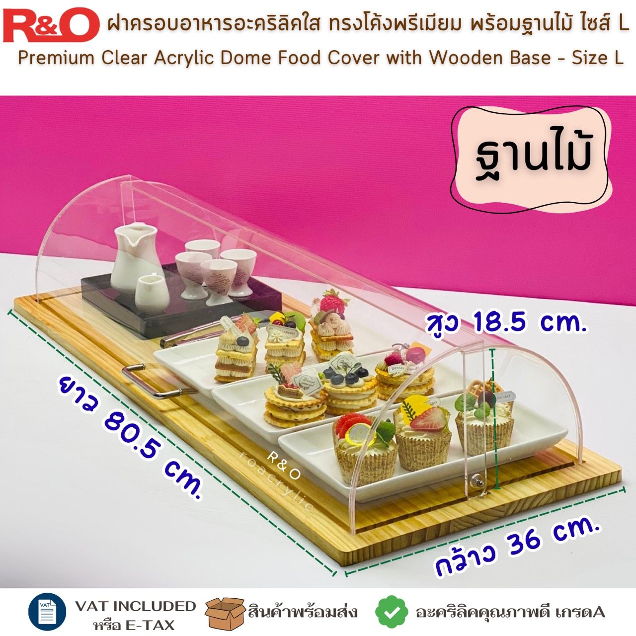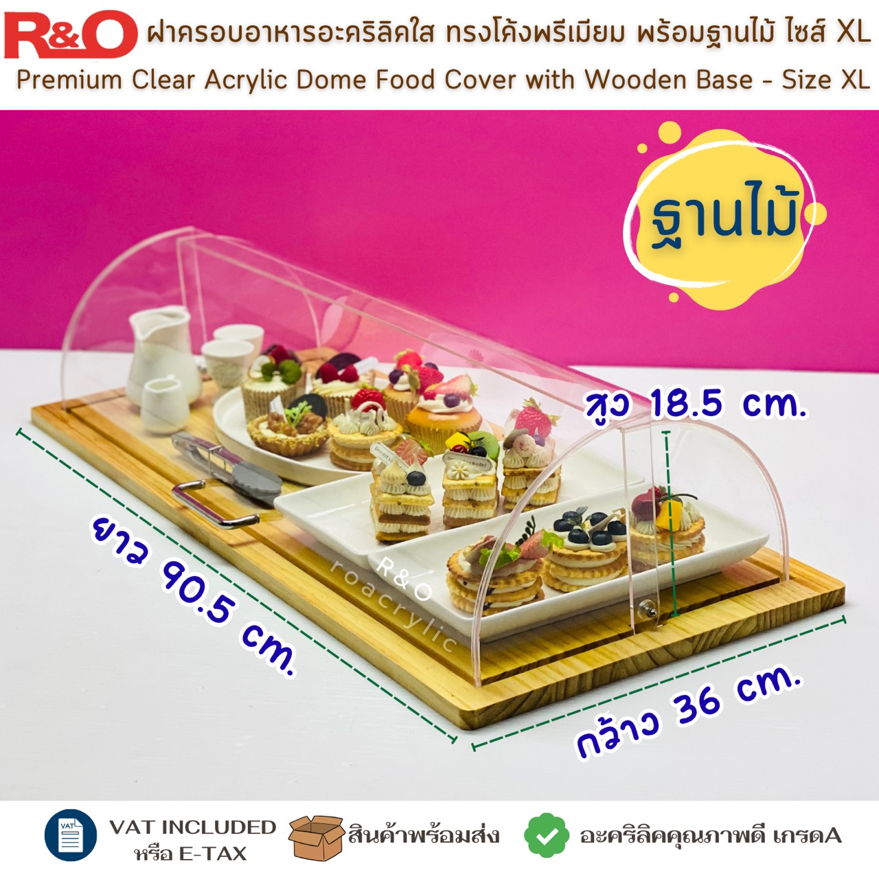 ฝาครอบอาหารอะคริลิคใส ทรงโดมพรีเมี่ยม พร้อมฐานไม้ ไซส์ XL ขนาด 90.5x36x18.5 cm.