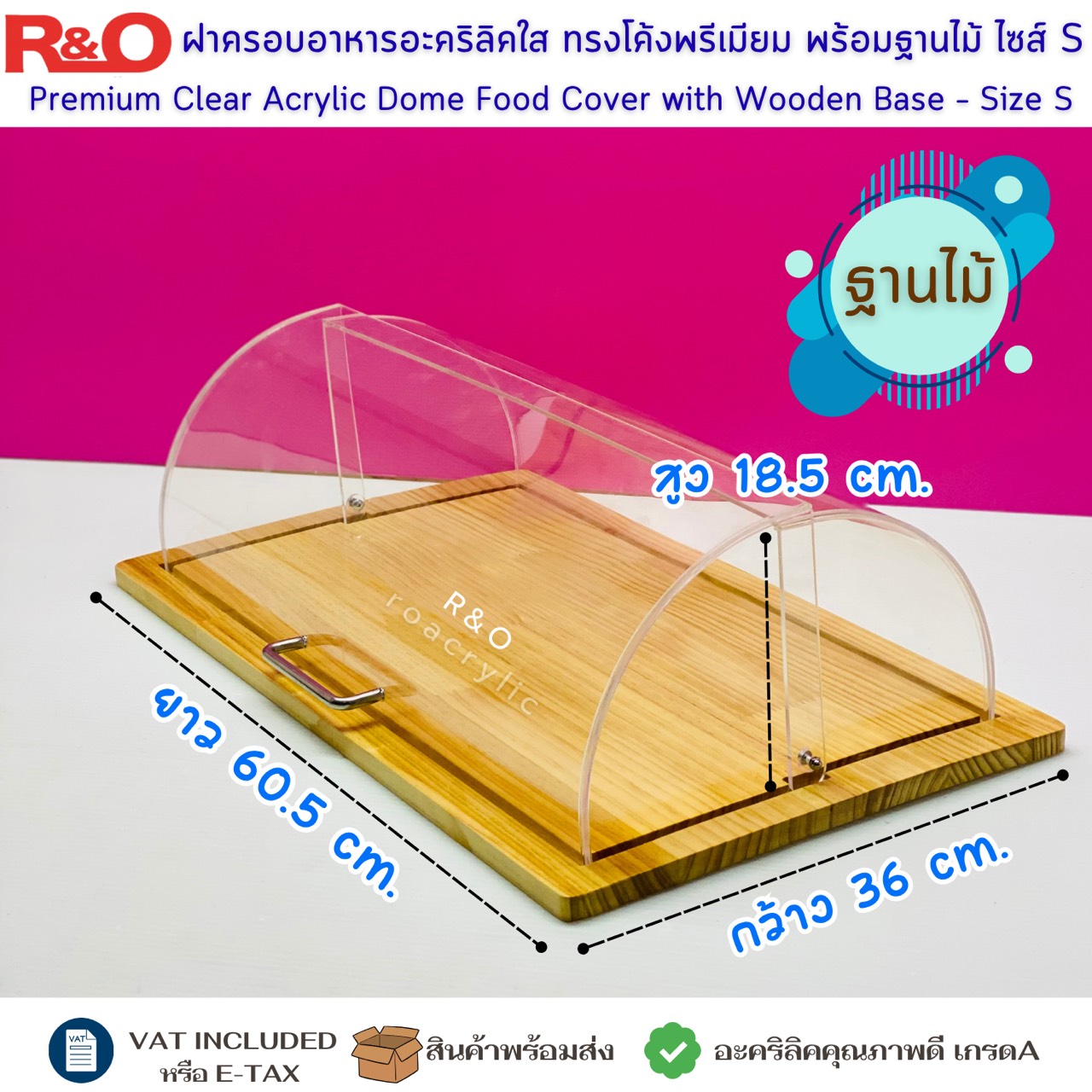 ฝาครอบอาหารอะคริลิคใส ทรงโดมพรีเมี่ยม พร้อมฐานไม้ ไซส์ S ขนาด 60.5x36x18.5 cm.