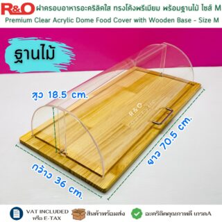 ฝาครอบอาหารอะคริลิคใส ทรงโดมพรีเมี่ยม พร้อมฐานไม้ ไซส์ M ขนาด 70.5x36x18.5 cm.