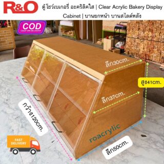 roacrylicตู้โชว์เบเกอรี่ อะคริลิคใส แบบบานยกหน้า สไลด์หลัง Clear Acrylic Bakery Display Cabinet