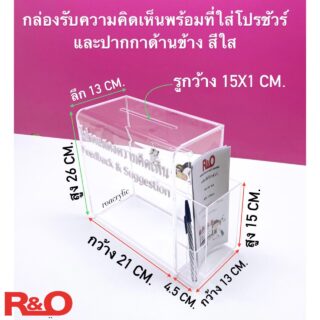 กล่องรับความคิดเห็นพร้อมที่ใส่โปรชัวร์และใส่ปากกา สีใส ขนาด 21x13x26 cm.