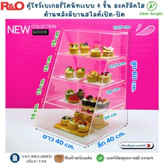 ตู้โชว์เบเกอรี่ดีไซน์ใหม่ 4 ชั้น ผลิตจาก อะคริลิคใสเกรด A+ หนา 5 มม.