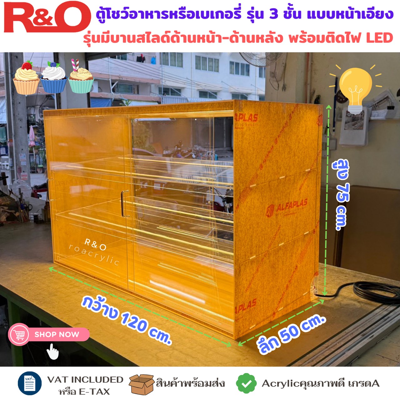 ตู้อะคริลิคโชว์อาหาร 2ชั้น มีประตูปิด~บานสไลด์ ขนาดยาว 80xลึก35 xสูง55 cm.