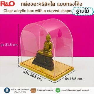 roacrylic กล่องอะคริลิคใส พร้อมฐานไม้ ทรงโค้งพรีเมียม ขนาด30.5x18.5x31.8cm. Dome Display