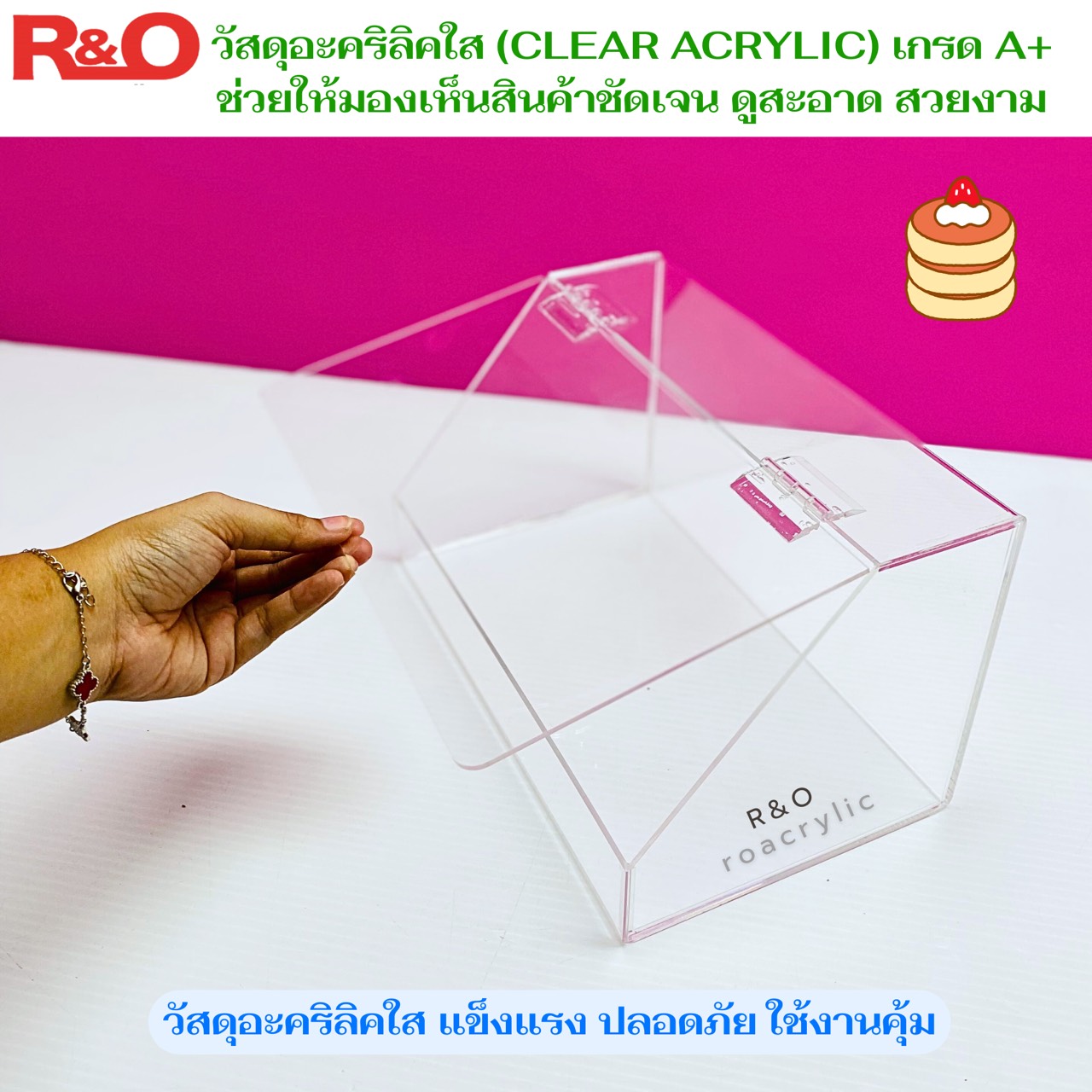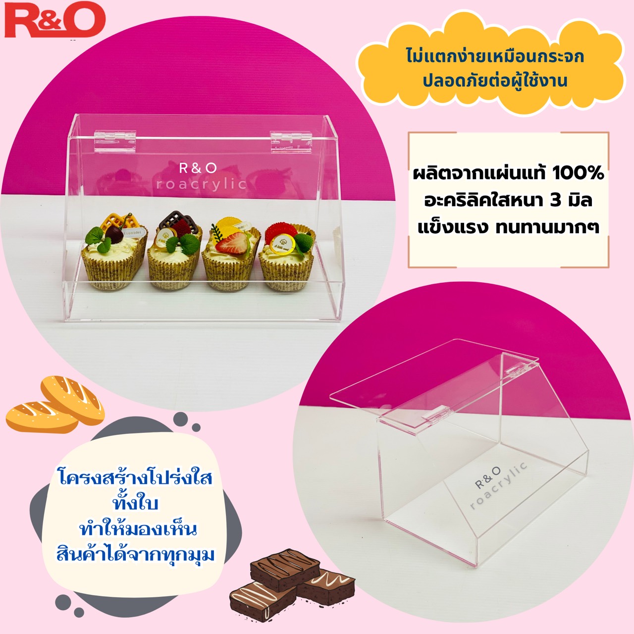 งานอะคริลิคเกรด A+ ใสแบบกระจก ช่วยให้ขนมดูน่าทานขึ้น สะอาด