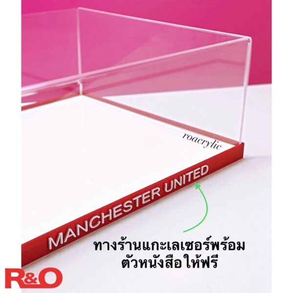 กล่องครอบโมเดลพร้อมฐานสีขาวขอบแดง ขนาด 55x45x20 cm.