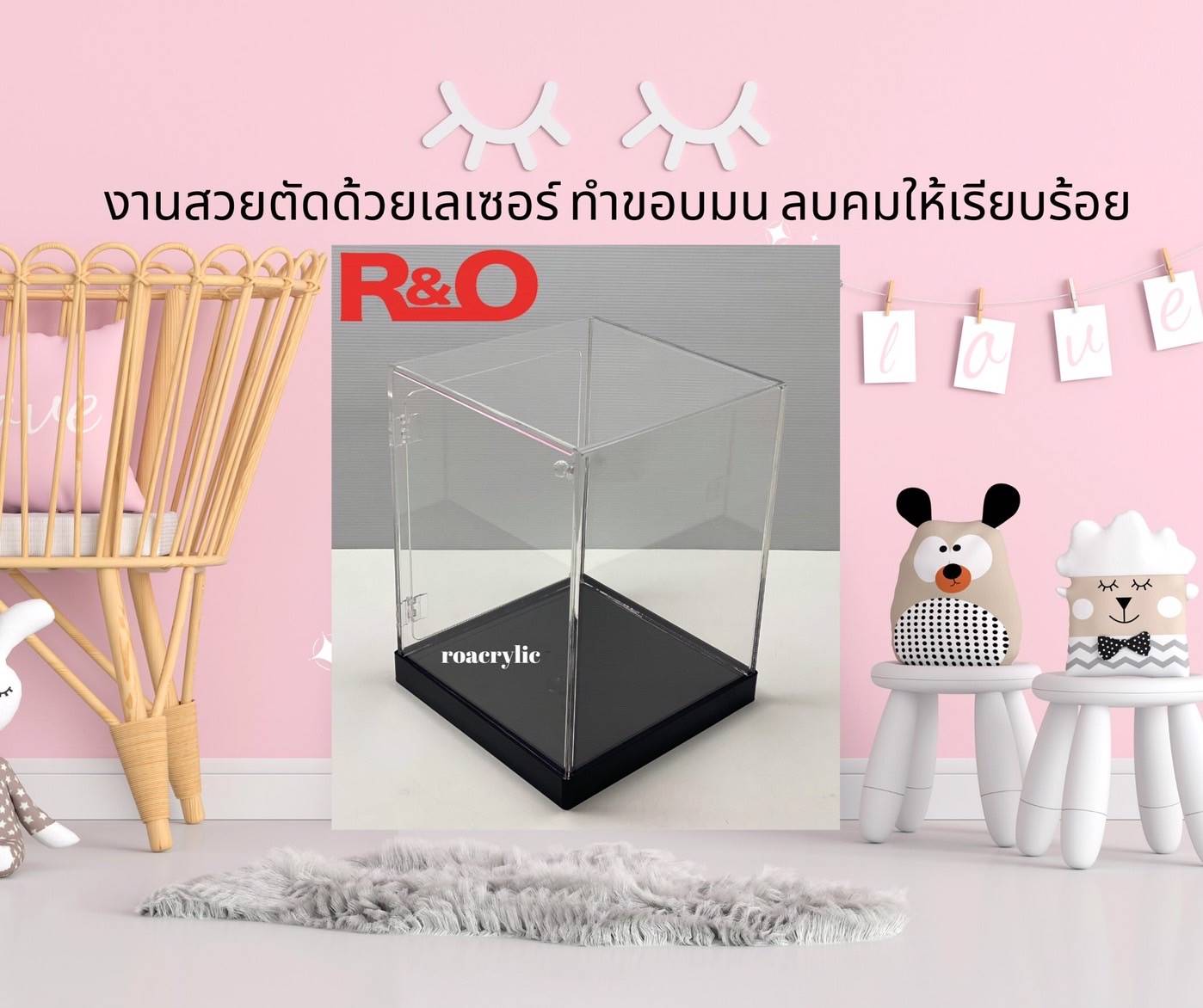 กล่องครอบโมเดลพร้อมฐานติดกับกล่อง มีประตูเปิด-ปิด ด้านหลัง ขนาด 23×23.5×28 cm.