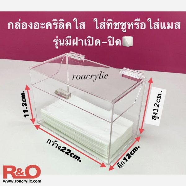 กล่องอะคริลิคสีใสรุ่นมีฝาปิด ขนาด22x12x12cm.