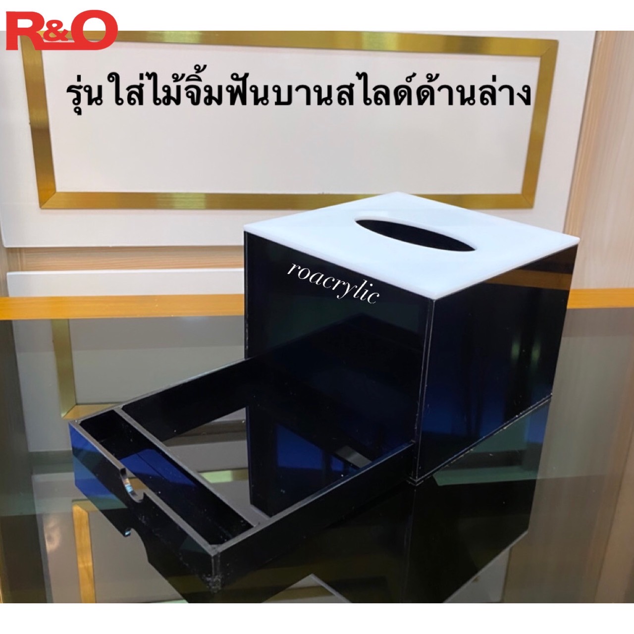 -มีบานสไลด์ใส่ไม้จิ้มฟันด้านล่าง เปิดฝาใส่ทิชชูด้านบนเพื่อให้เปลี่ยนกระดาษได้ง่าย เมื่อกระดาษหมด