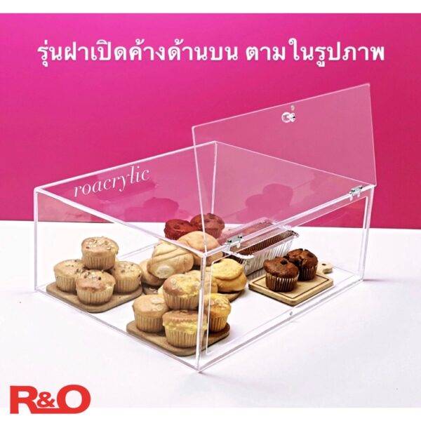 กล่องใส่ขนมปัง รุ่นมีฝาเปิด-ปิด ด้านหลัง สีใส รุ่นบานพับเหล็ก ขนาด 50x40x20 cm.