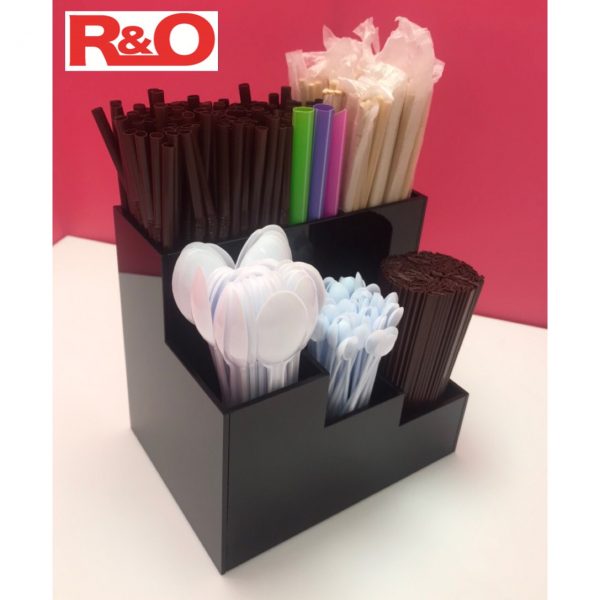 กล่องใส่หลอด ใส่ช้อนใส่อุปกรณ์ต่างๆสีดำ ไล่ระดับ 17.5x13x16 cm.