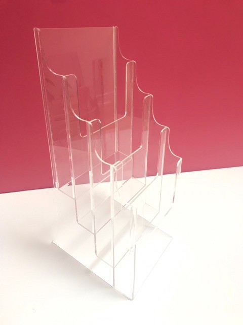 กล่องใส่โปรชัวร์ A5 แนวตั้ง สีใส รุ่น 4ชั้น ขนาด16.5x16x33cm.