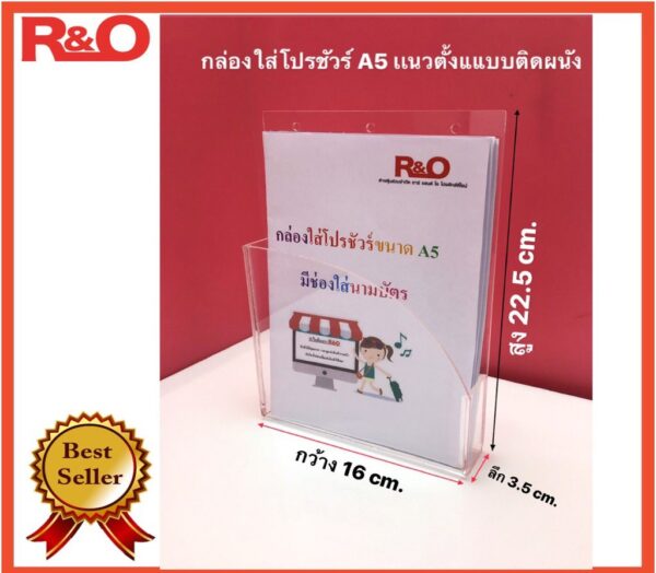 กล่องใส่โปรชัวร์A5แนวตั้งแบบติดผนัง ขนาด 16×3.5×22.5 cm.