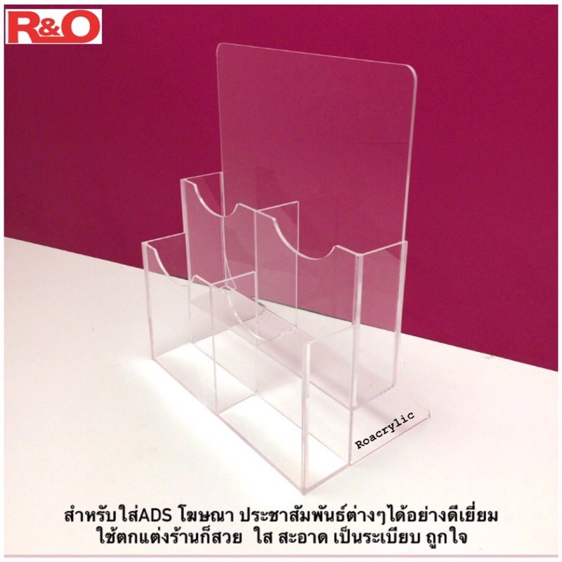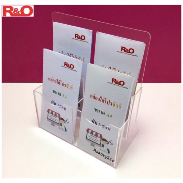 กล่องใส่โปรชัวร์4ช่องขนาด A4พับ 3 ตอน สีใส ขนาด 23x13x27 cm.