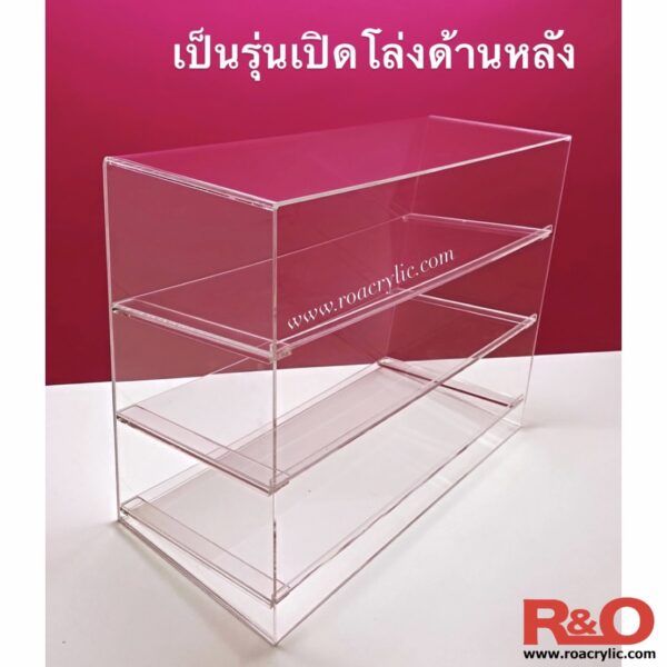 ตู้โชว์อาหารหรือโดนัท 3 ชั้น สีใส รุ่นเปิดโล่งด้านหลัง ขนาด 60x30x50 cm.