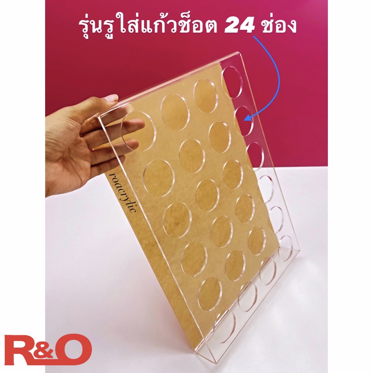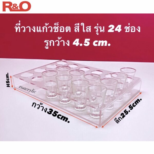ที่วางแก้วช็อต วางแก้วเหล้า สีใส 24 ช่อง รูกว้าง 4.5 cm. ขนาด35×25.5×5 cm.