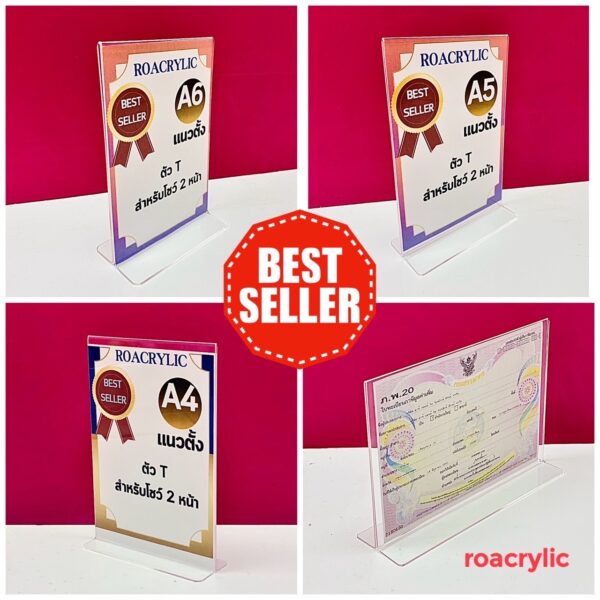 ป้ายตั้งโต๊ะ A4 แนวนอน ตัว T-Shape ขนาด 30×8×21 cm.