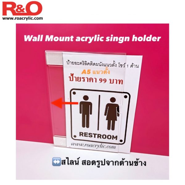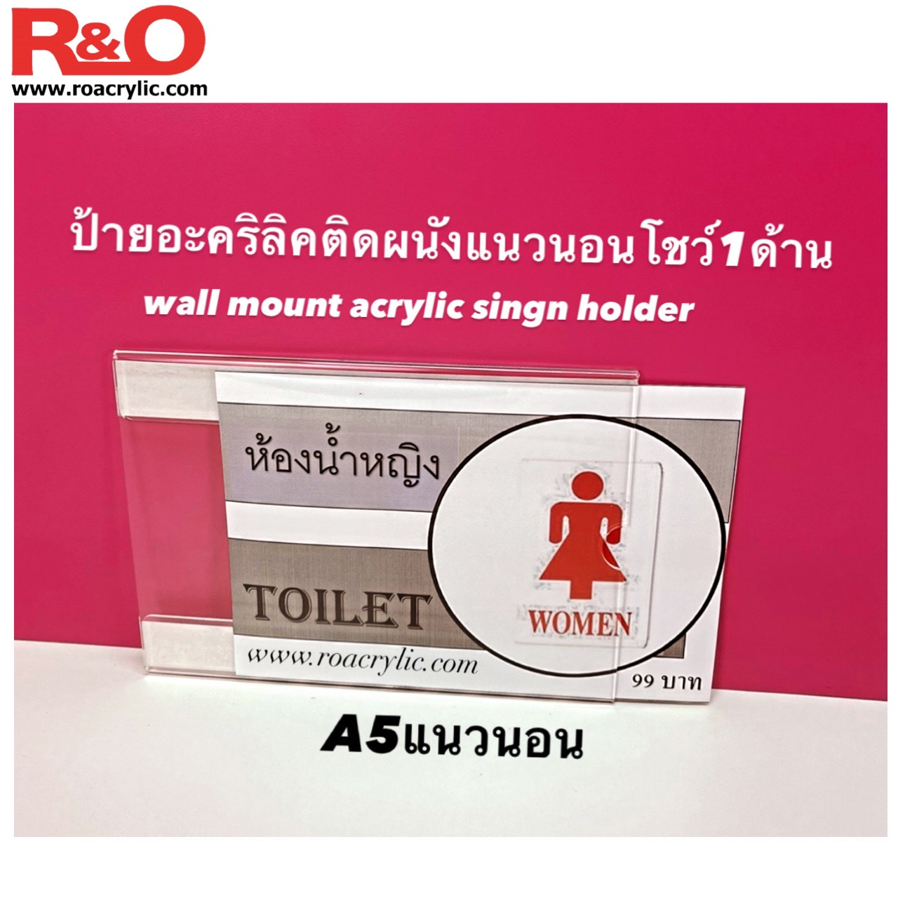 ป้ายอะคริลิคติดผนังแนวตั้ง โชว์ 1 ด้าน ใส่กระดาษ ขนาด A5 สีใส ขนาด 15×21 cm.