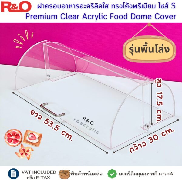 ฝาครอบอาหารอะคริลิคใส ทรงโค้งพรีเมียม รุ่นพื้นโล่ง ไซส์ S ขนาด 53.5×30×17.5 cm.
