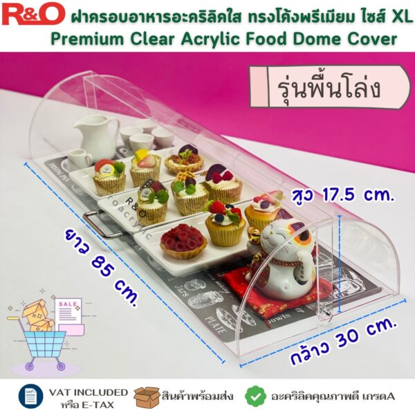 ฝาครอบอาหารอะคริลิคใส ทรงโค้งพรีเมียม รุ่นพื้นโล่ง ไซส์ XL ขนาด 85×30×17.5 cm.