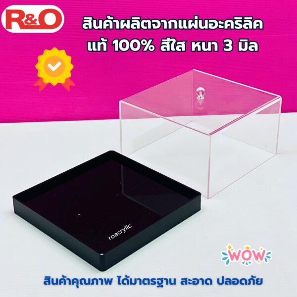 Premium grade acrylic bakery box กล่องอะคริลิคใส ครอบขนมเค้กและเบเกอรี่ ฐานขาว ขนาด 21x21x12 cm.