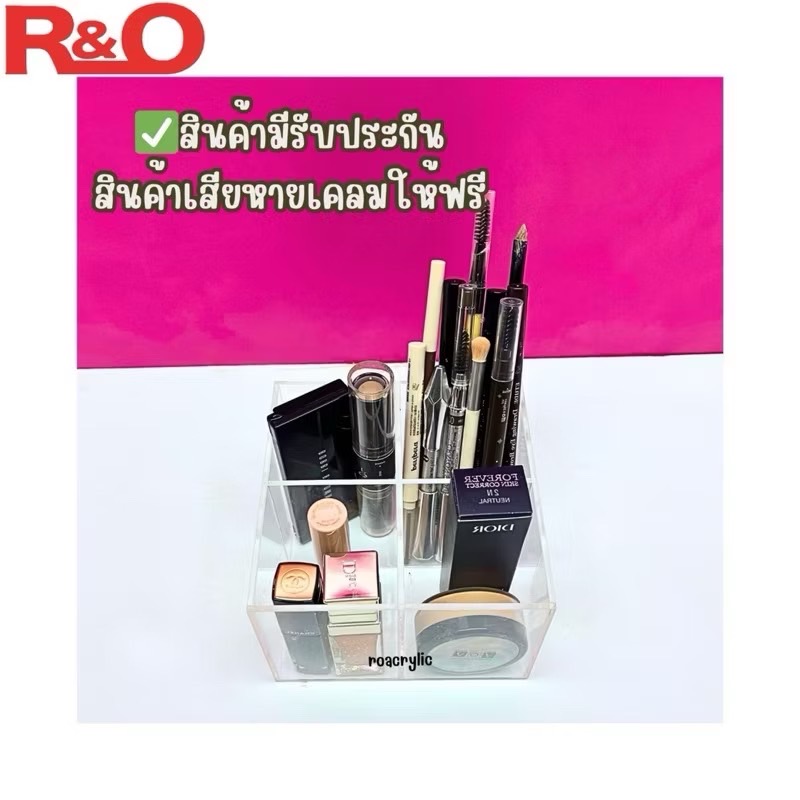 roacrylic กล่องอะคริลิคใส รุ่นกั้นช่อง 4ช่อง ขนาด12x12x8cm.