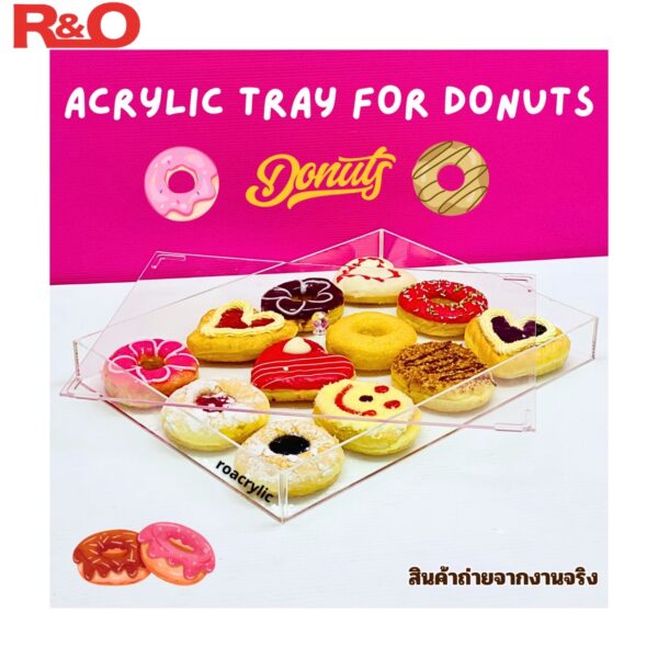roacrylic ถาดอะคริลิคใส่โดนัท สีใส รุ่นมีฝาเปิด-ปิด ไซส์ L ขนาด กว้าง40xลึก30xสูง5 cm.